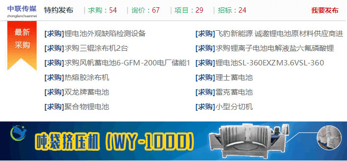 鋰電材料  |  鋰電設(shè)備  |  零部件  |  鋰電池  |  更多>